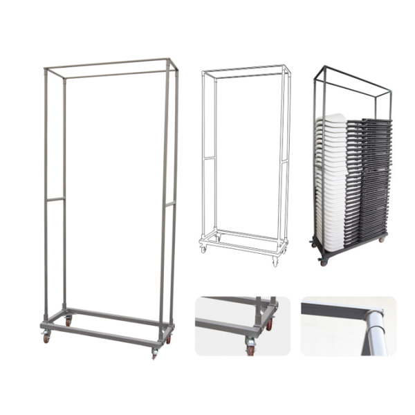 - Platzsparende Lagerung: Platz für bis zu 25 Stühle auf einmal.