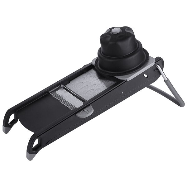 - für glatte und gewellte Scheiben und Waffelschnitt von 0,5 bis 10 mm anhand Skala justierbar
