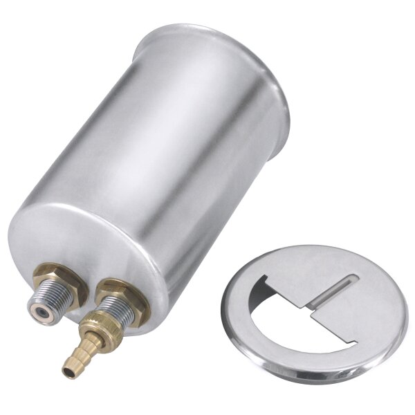 - mit Wasseranschluss bestehend aus Einlaufkopf 1/2" und Ablaufstandrohr mit Schlauchverschraubung 1/2"